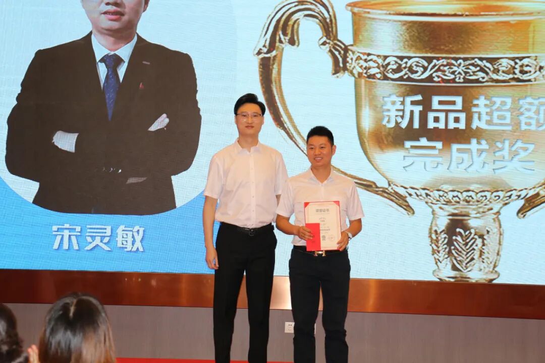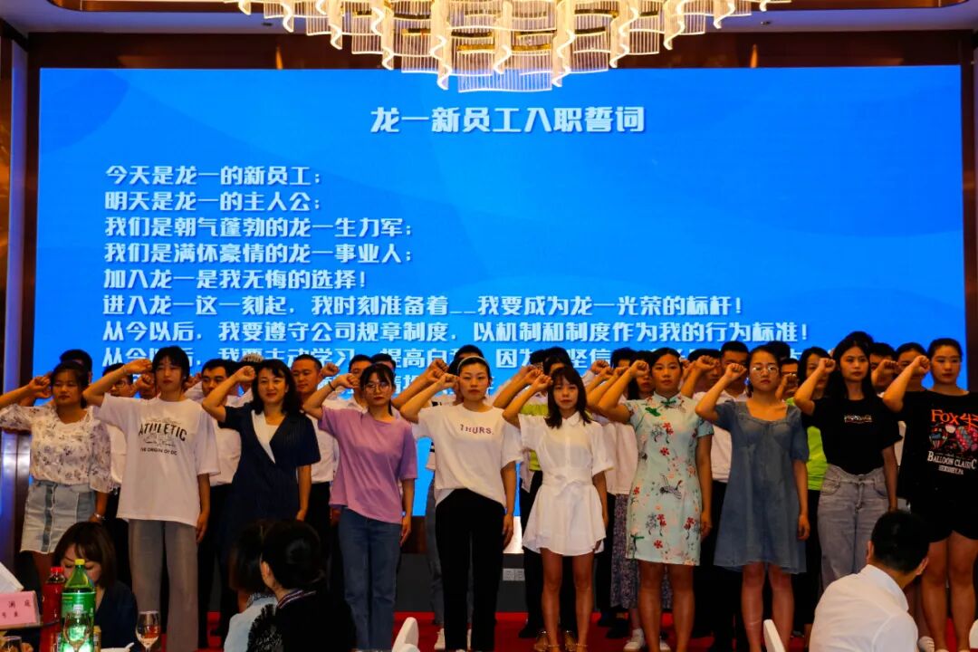 龙一医药各大核心业务负责人依次登台,勾勒出各业务的成长曲线和未来宏图,将龙一生态下采销、电商、连锁等发展状态和盘托出,振奋人心。颁奖成为半年会的重头戏,在星光璀璨的舞台上,50余个奖项相继揭晓,近百人分别获得荣誉、定制勋章、现金大奖、超级大礼以及入驻龙一荣耀殿堂的资格,正是他们的无所畏惧般的披荆斩棘,为龙一医药助力强劲的业绩增长动力。成长是一场生生不息的蜕变,强大赋予人使命,踏上龙一医药的青云梯,乘风破浪般的新生扑面而来。“我宣誓,今天是龙一的新员工,明天是龙一的主人公……”众多龙一医药新面孔在舞台上留下铮铮誓言,留下他们成人达己、开拓创新的凌云志。